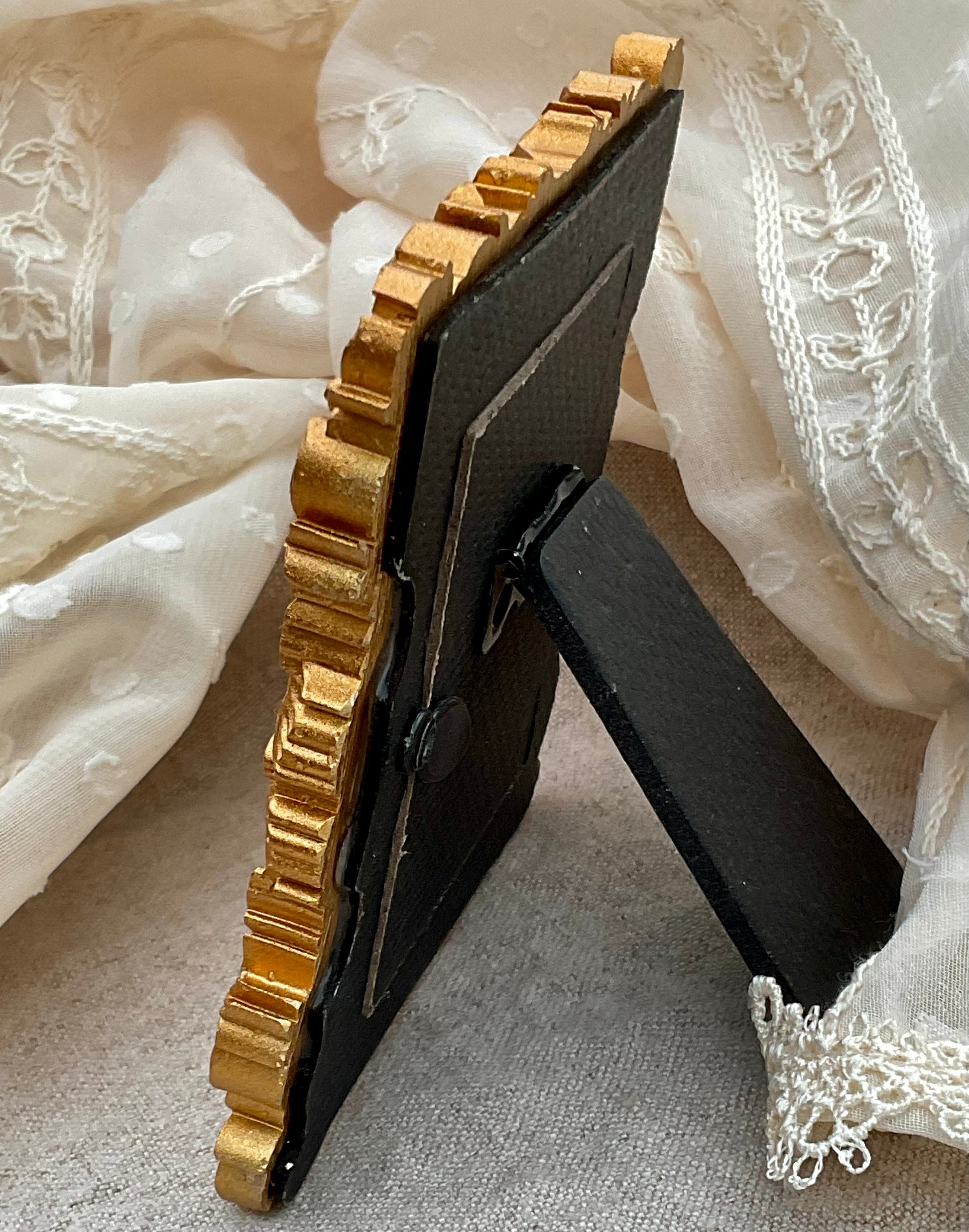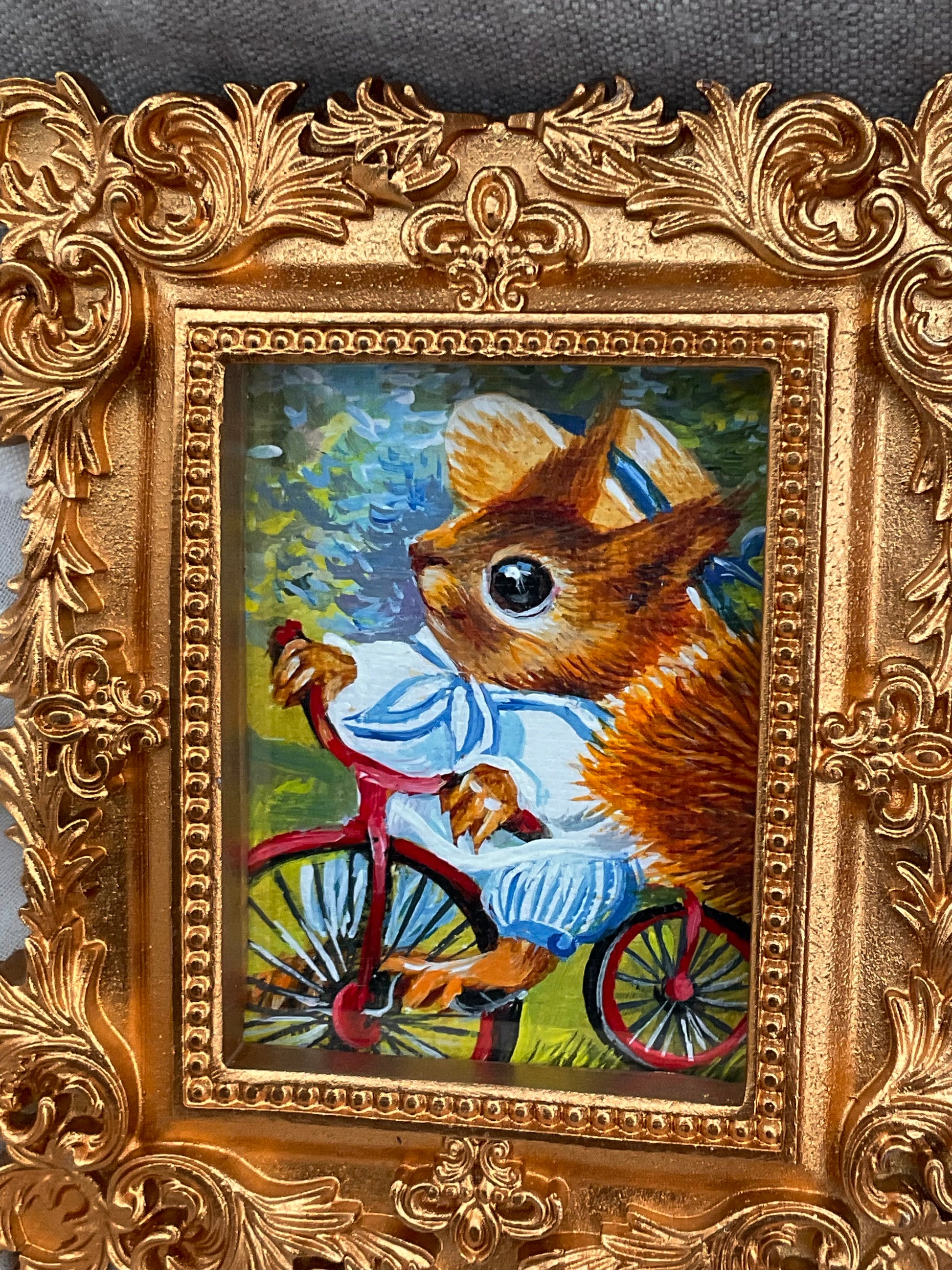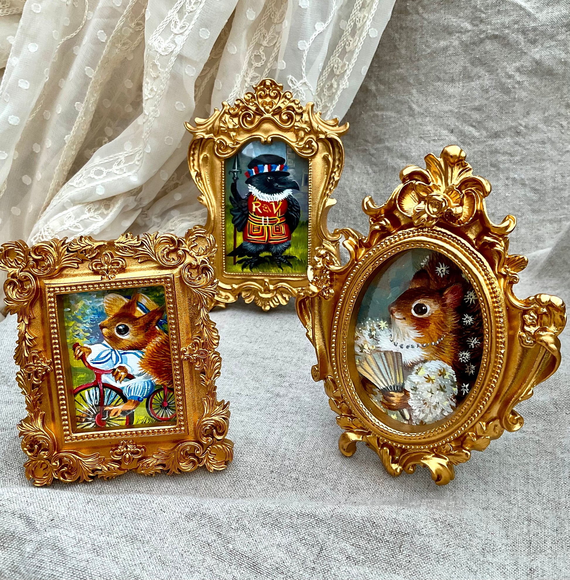 Acrylic on canvas impressionistic miniature, framed in golden baroque frame, hanging or standing options, 8x9.5 cm.