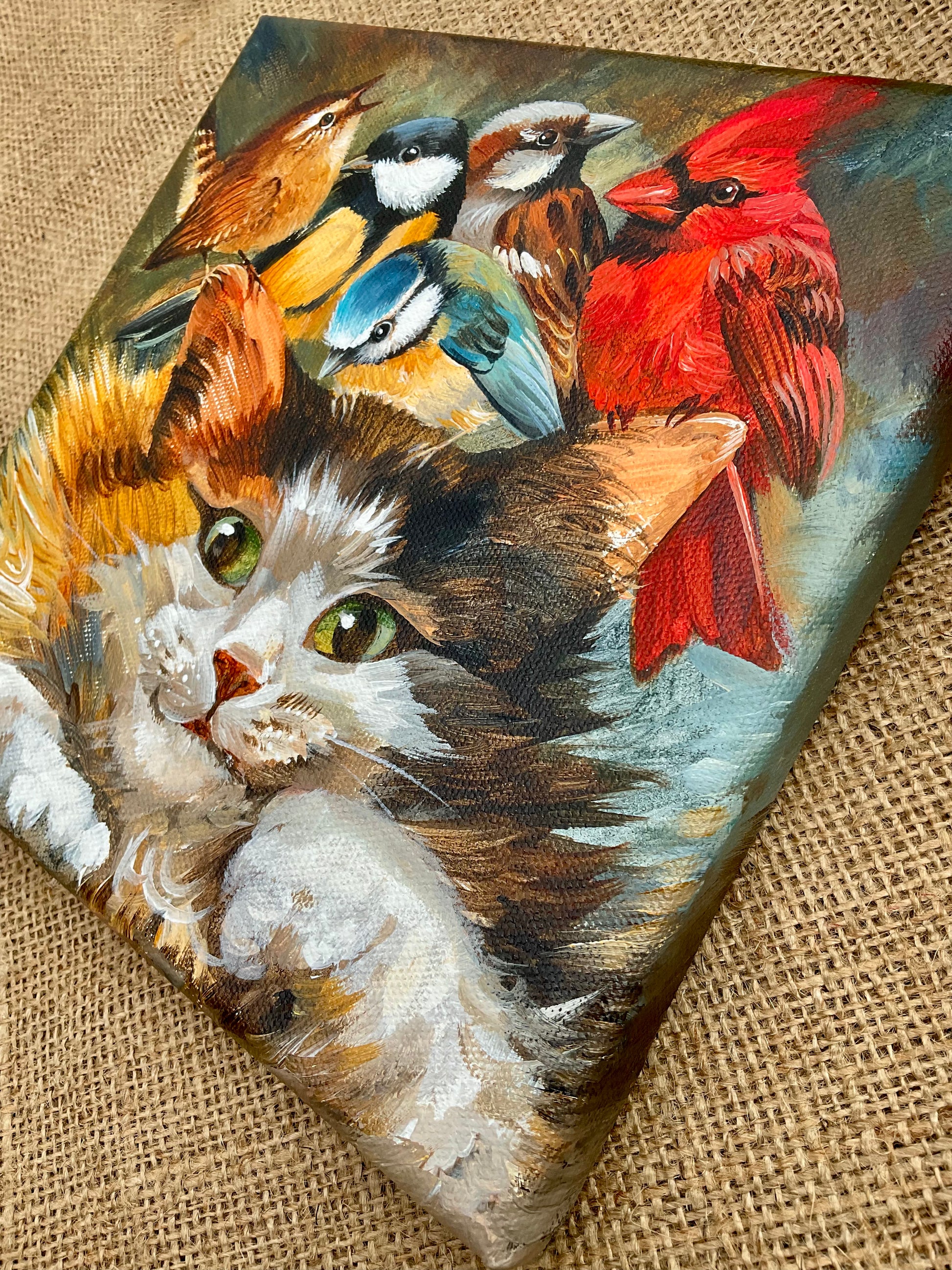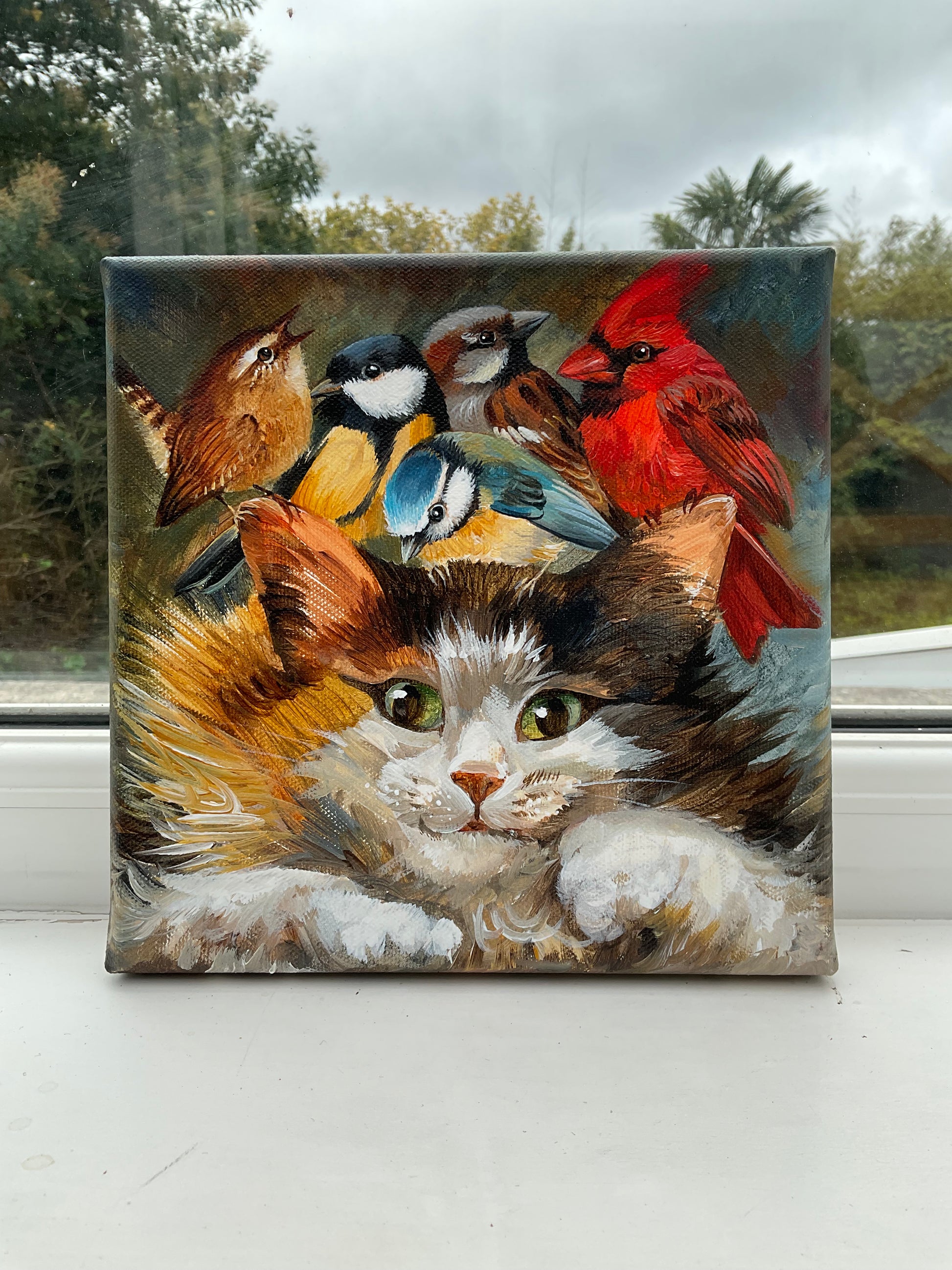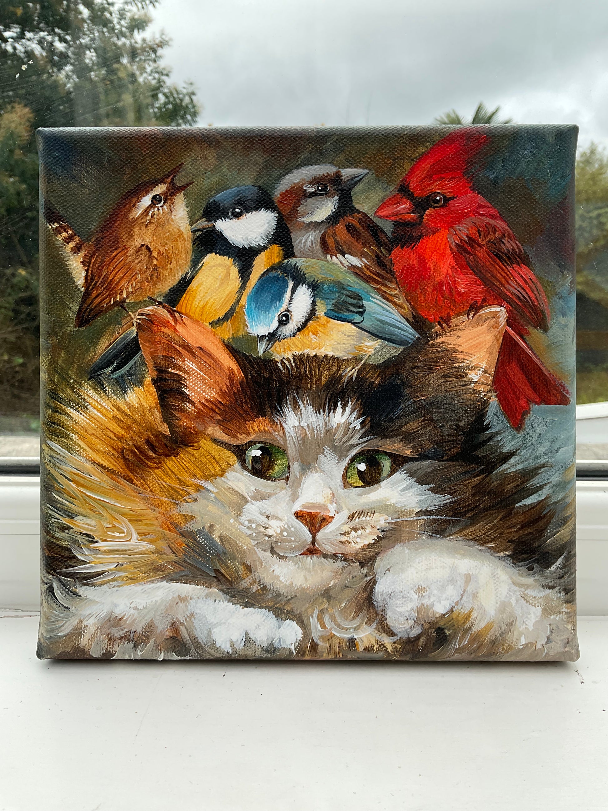Original painting acrylic on canvas 8x8 inches, 20x20 cm, sides painted, ready to hang. Can be framed in a wooden floating frame on request. Professionally varnished, free delivery.