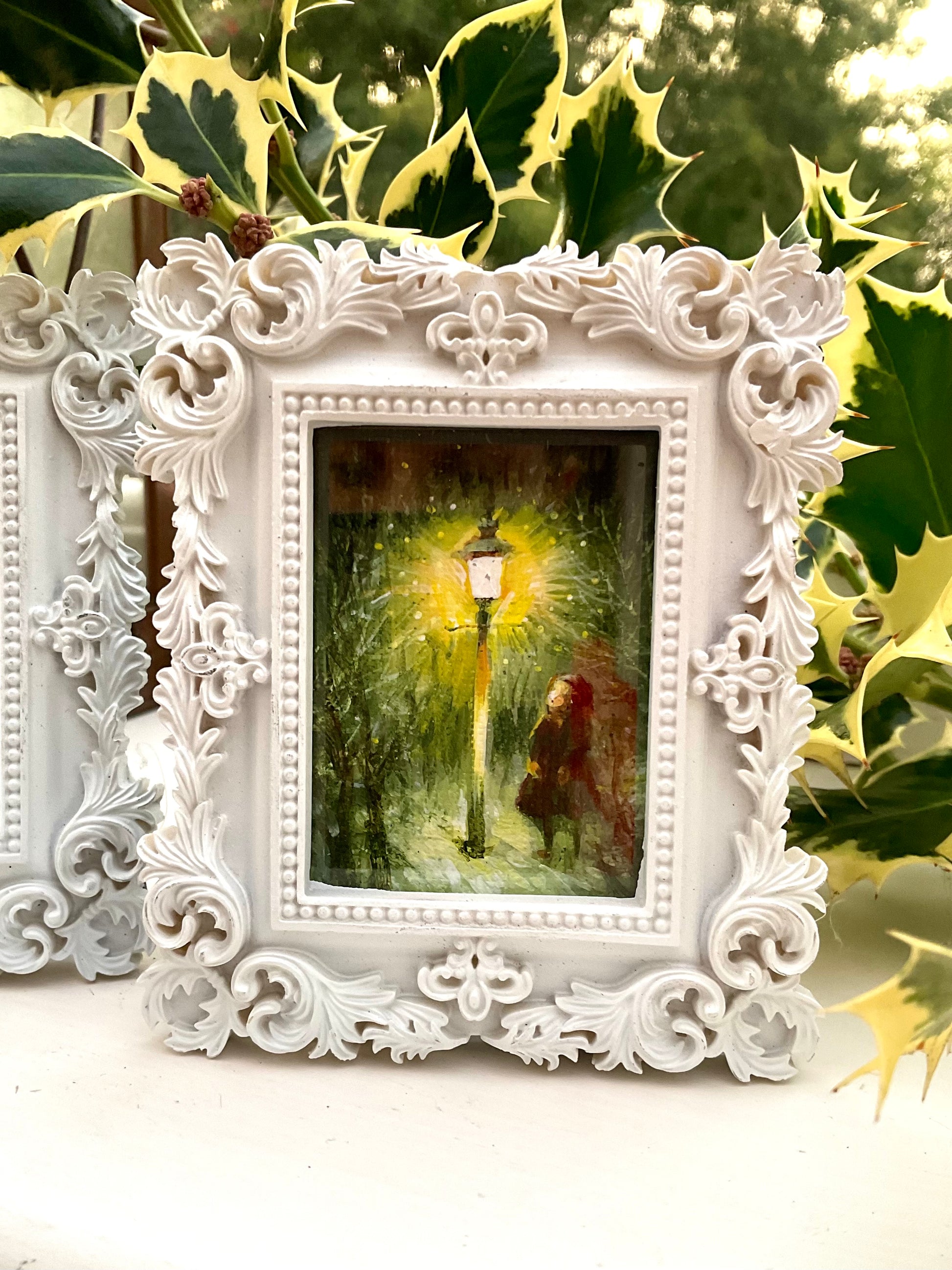 9.5x8 cm, 4x3 inches original miniature painting, acrylic in canvas, in a frame, standing or hanging option can be added on request.