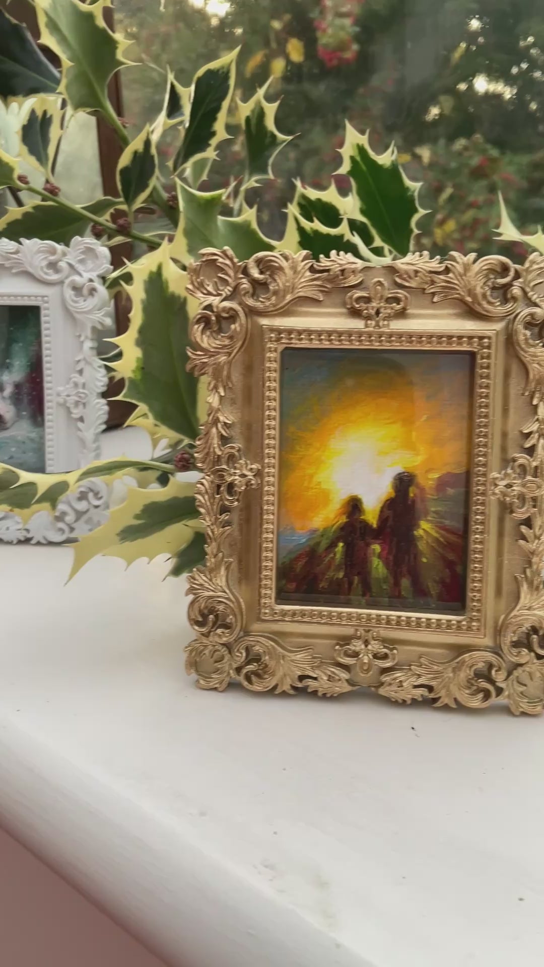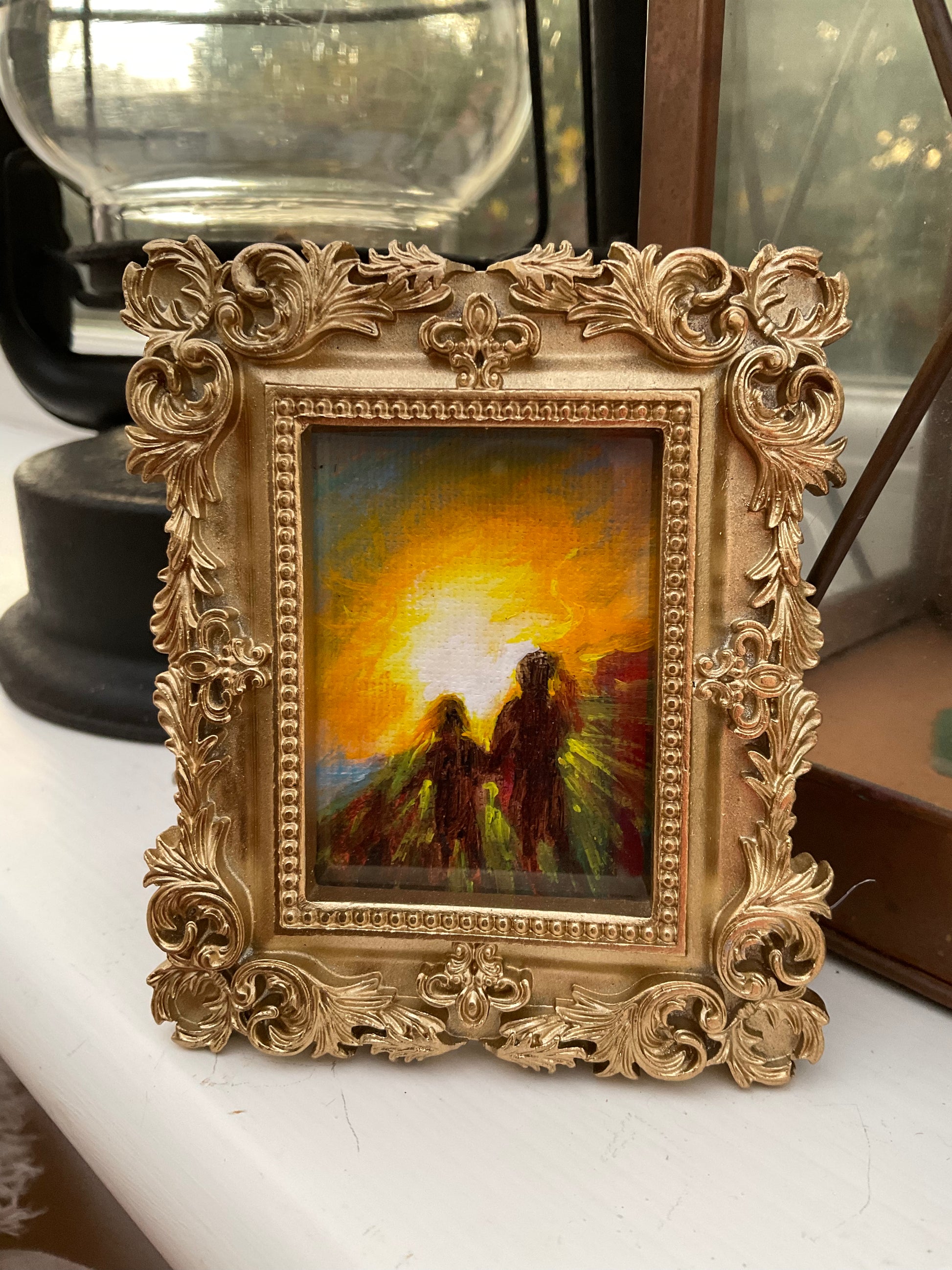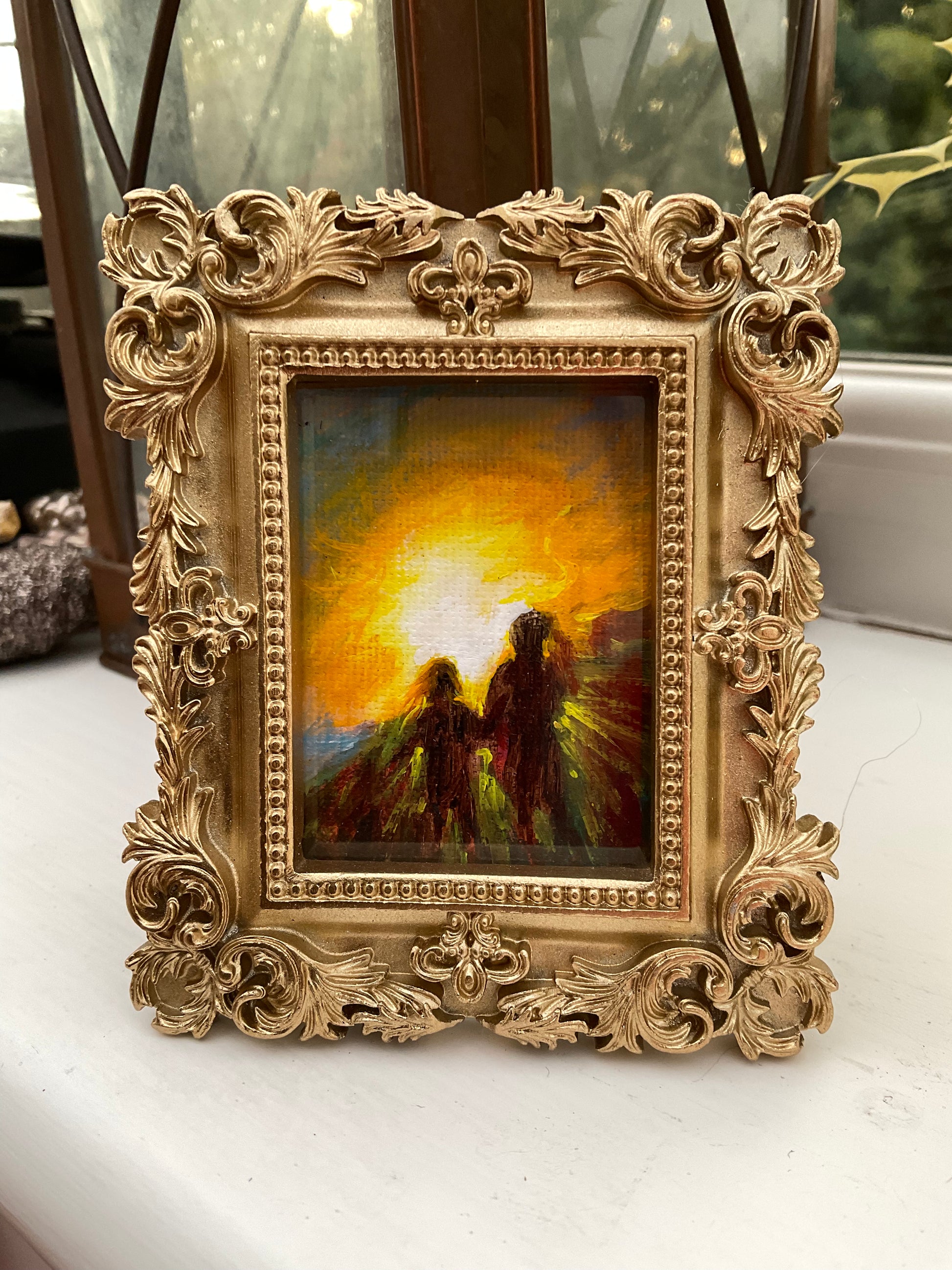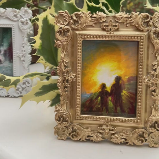 9.5x8 cm, 4x3 inches original miniature painting, acrylic in canvas, in a frame, standing or hanging option can be added on request.